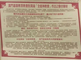 • 澳门教会刊联合声明 吁防范全能神教会(图) 澳门基督教众教会对异端“全能神教会”作出之联合声明   原标题:澳门众教会与机构联合声明抵制全能神异端  近日,澳... 2013-05-06
