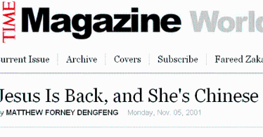 • “东方闪电”在中国   编者按:《时代周刊》是美国影响最大的新闻周刊,有世界“史库”之称,1923年3月由亨利·卢斯和布里顿·哈登创办,其宗... 2012-08-02