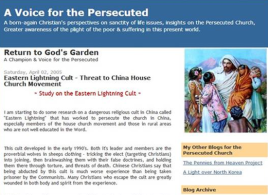 • 中国基督徒:请远离全能神!(图)   编者按:A Voice for the Persecuted是基督徒发表自己对神圣生命的透视,对现今世界的苦难和穷人... 2013-01-23