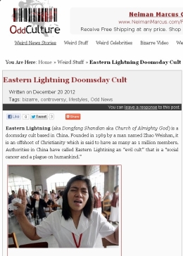 全能神鼓吹世界末日 遭美国网站唾弃(图)