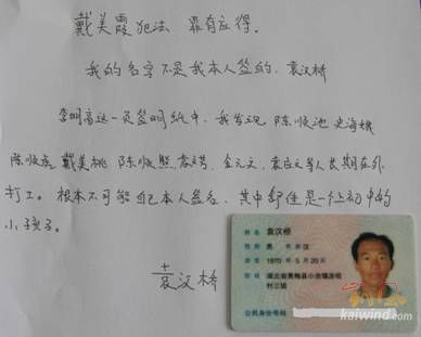 黄核的《实证戴美霞一事签名造假(图)》(凯风网2013-06-05)再一次曝出法轮功造假骗人的劣行。湖北省黄梅县小池镇涂咀村三组的法轮功人员戴美霞因扰乱社会秩序,利用邪教组织破坏法律实施,现已刑事拘留并拟处以刑罚。亲属为她征签,作辩罪减刑的努力,本无不可。然而,所谓的签名者绝大部分是“被签名”。这其中有陈顺熊、袁文芳、金元文等长年在外地打工者,有25名当时都在学校里上课的儿童,有瘫痪在床、无法拿笔签字的老人。名单中的袁汉桥对自己“被签名”表示了极大的愤慨:“怎么可能呢?这字迹都不一样!”