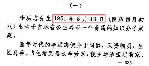 请注意“图三”中“333”,它表示首版《转法轮》的页码。“附录一”内容的全称是《中国法轮功创始人、法轮功研究会会长李洪志先生小传》,这《小传》中特地强调了李洪志假生日那天是“阴历四月初八”也就是释迦牟尼的诞生日,这不是精心策划的旨在自我神化的暗示是什么?