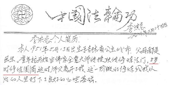 李洪志亲笔写的个人简历:“本人8岁时修炼圆满”。