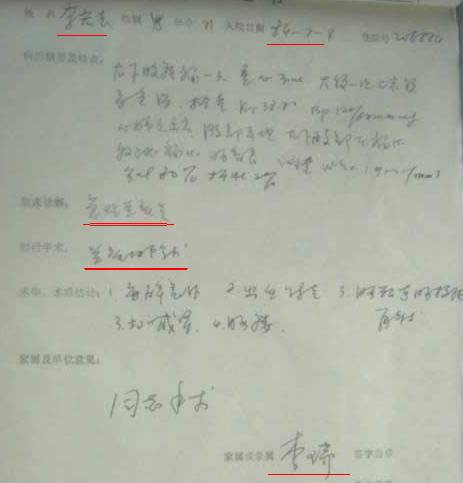 李洪志切除阑尾的病历